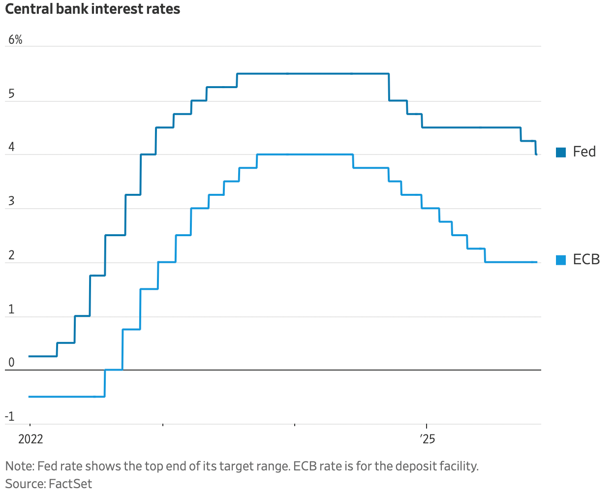 Thuế quan của Hoa Kỳ đã gây tổn hại đến các nền kinh tế phụ thuộc vào xuất khẩu của khối, và mức tăng giá 12% của đồng Euro so với đồng đô la trong năm nay đang khiến hàng xuất khẩu của châu Âu càng kém cạnh tranh hơn. Tuy nhiên, các cuộc khảo sát kinh doanh gần đây cho thấy nền kinh tế đang lấy lại đà tăng trưởng, trong khi chi tiêu của Đức cho cơ sở hạ tầng và quân sự dự kiến sẽ thúc đẩy hoạt động kinh tế bắt đầu từ năm sau.