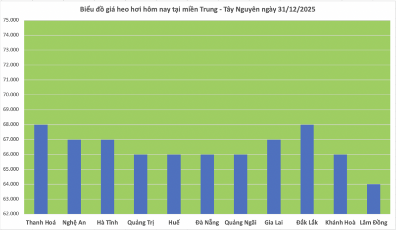 Tiếp đến, mức giá 67.000 đồng/kg vẫn được duy trì tại hai tỉnh Hà Tĩnh và Gia Lai. Các địa phương bao gồm Quảng Trị, Huế, Đà Nẵng, Quảng Ngãi và Khánh Hoà đồng loạt đi ngang ở mức 66.000 đồng/kg. Tỉnh Lâm Đồng tiếp tục là địa phương có mức thu mua thấp nhất khu vực khi neo ở mốc 64.000 đồng/kg.