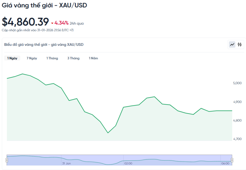 Giá vàng thế giới hôm nay 01/02/2026 và biểu đồ biến động giá vàng thế giới 24h qua