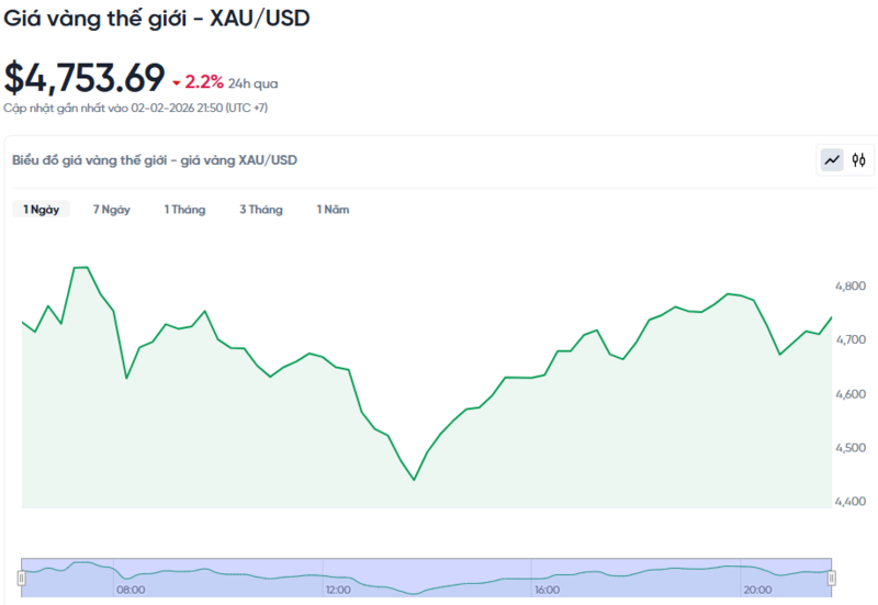 Giá vàng thế giới hôm nay 03/02/2026 và biểu đồ biến động giá vàng thế giới 24h qua