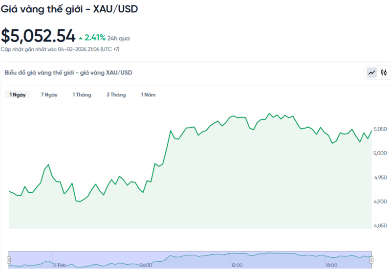 Giá vàng thế giới hôm nay 05/02/2026 và biểu đồ biến động giá vàng thế giới 24h qua