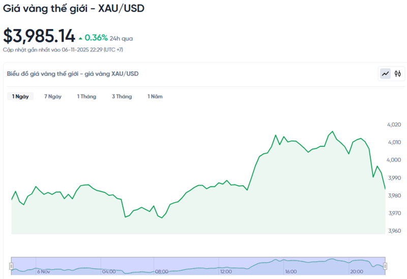 Giá vàng thế giới hôm nay 07/11/2025 và biểu đồ biến động giá vàng thế giới 24h qua