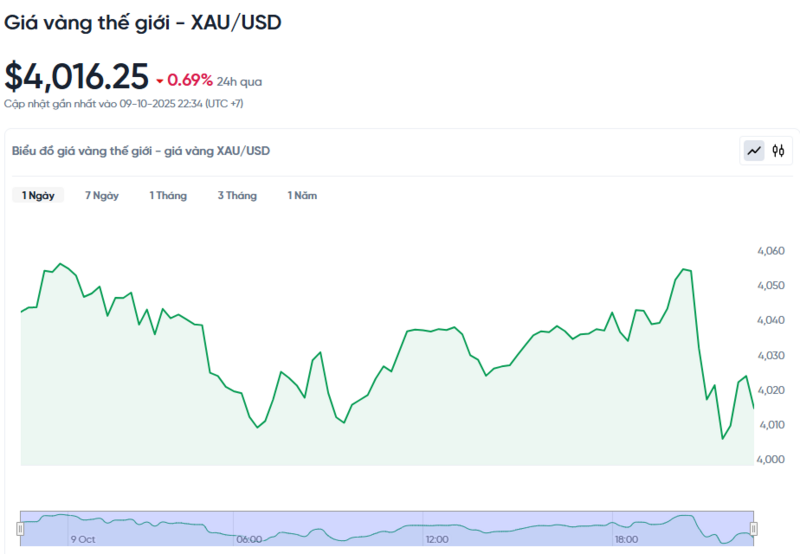 Giá vàng thế giới hôm nay 10/10/2025 và biểu đồ biến động giá vàng thế giới 24h qua
