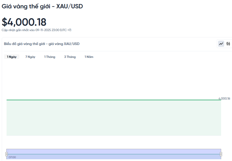 Giá vàng thế giới hôm nay 10/11/2025 và biểu đồ biến động giá vàng thế giới 24h qua