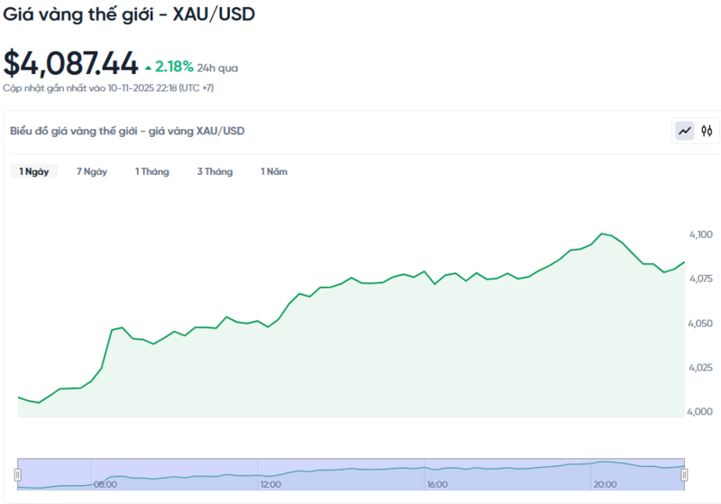 Giá vàng thế giới hôm nay 11/11/2025 và biểu đồ biến động giá vàng thế giới 24h qua