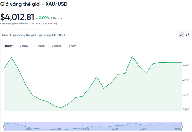 Giá vàng thế giới hôm nay 12/10/2025 và biểu đồ biến động giá vàng thế giới 24h qua