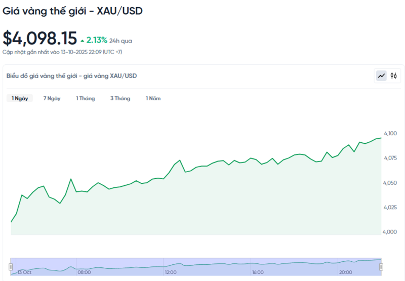 Giá vàng thế giới hôm nay 14/10/2025 và biểu đồ biến động giá vàng thế giới 24h qua