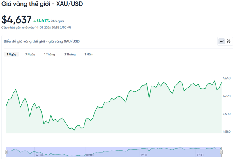 Giá vàng thế giới hôm nay 15/01/2026 và biểu đồ biến động giá vàng thế giới 24h qua
