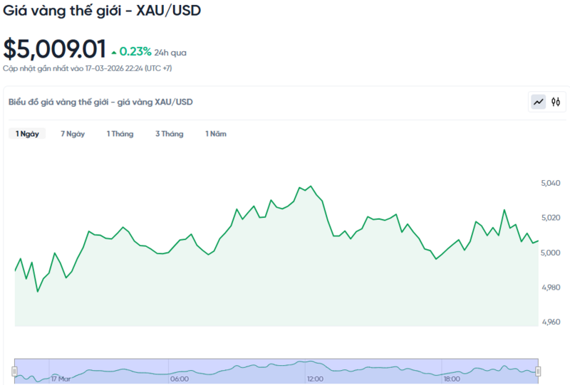 Giá vàng thế giới hôm nay 18/03/2026 và biểu đồ biến động giá vàng thế giới 24h qua