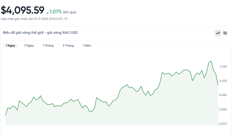 Giá vàng thế giới hôm nay 20/11/2025 và biểu đồ biến động giá vàng thế giới 24h qua