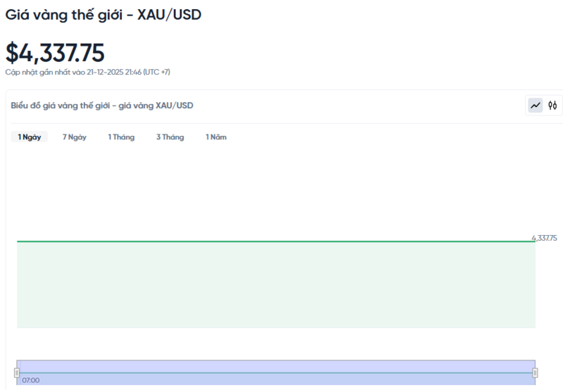 Giá vàng thế giới hôm nay 22/12/2025 và biểu đồ biến động giá vàng thế giới 24h qua