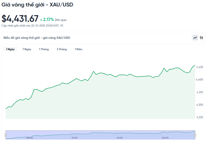 Giá vàng thế giới hôm nay 23/12/2025 và biểu đồ biến động giá vàng thế giới 24h qua
