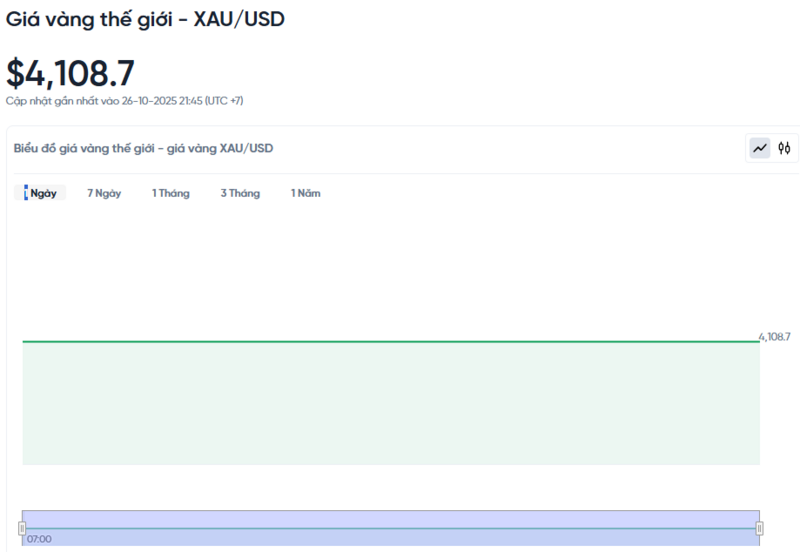 Giá vàng thế giới hôm nay 27/10/2025 và biểu đồ biến động giá vàng thế giới 24h qua
