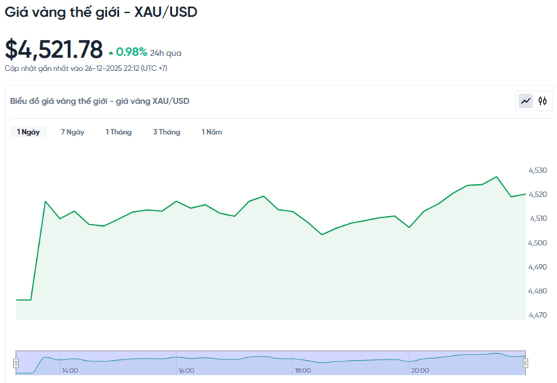 Giá vàng thế giới hôm nay 27/12/2025 và biểu đồ biến động giá vàng thế giới 24h qua