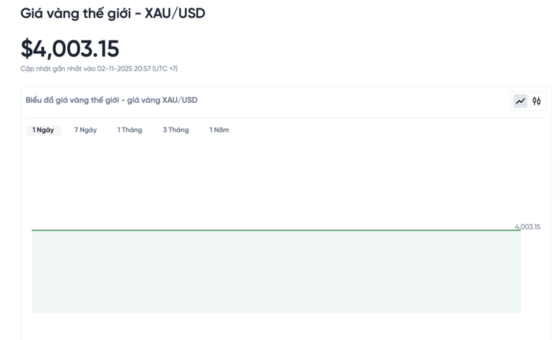 Giá vàng thế giới hôm nay 3/11/2025 và biểu đồ biến động giá vàng thế giới 24h qua