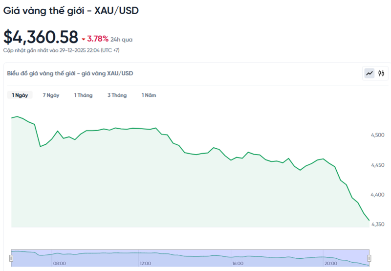 Giá vàng thế giới hôm nay 30/12/2025 và biểu đồ biến động giá vàng thế giới 24h qua