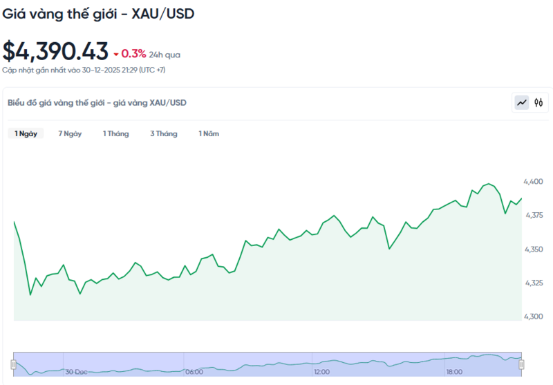 Giá vàng thế giới hôm nay 31/12/2025 và biểu đồ biến động giá vàng thế giới 24h qua