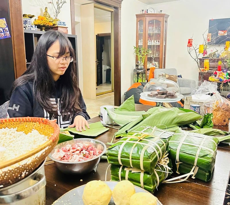 Mâm ngũ quả thu gọn trong điều kiện sẵn có, vài món ăn truyền thống được chuẩn bị tỉ mỉ, dù nguyên liệu đôi khi phải thay thế. Nhưng bánh chưng xanh, nhất định phải có trong mâm cỗ ngày Tết. Trong không gian nhỏ hẹp giữa mùa đông Đông Âu, những góc nhà ấy mang hơi thở rất Việt Nam, ấm áp, gần gũi và đầy ký ức.