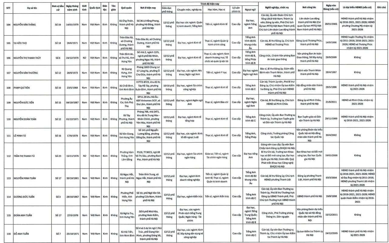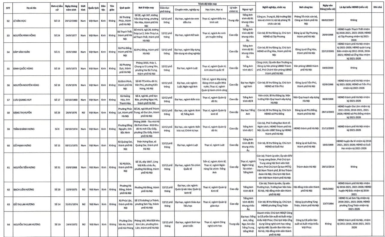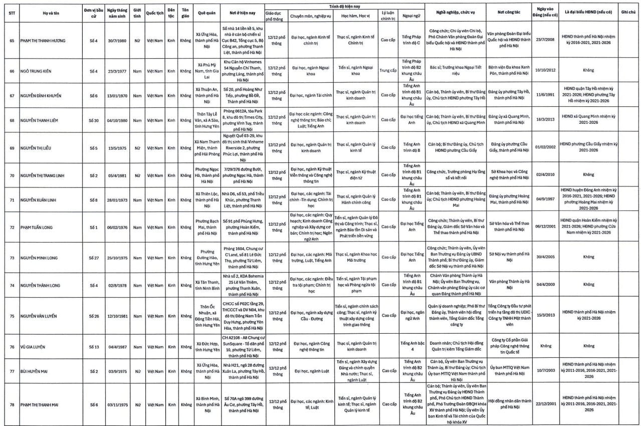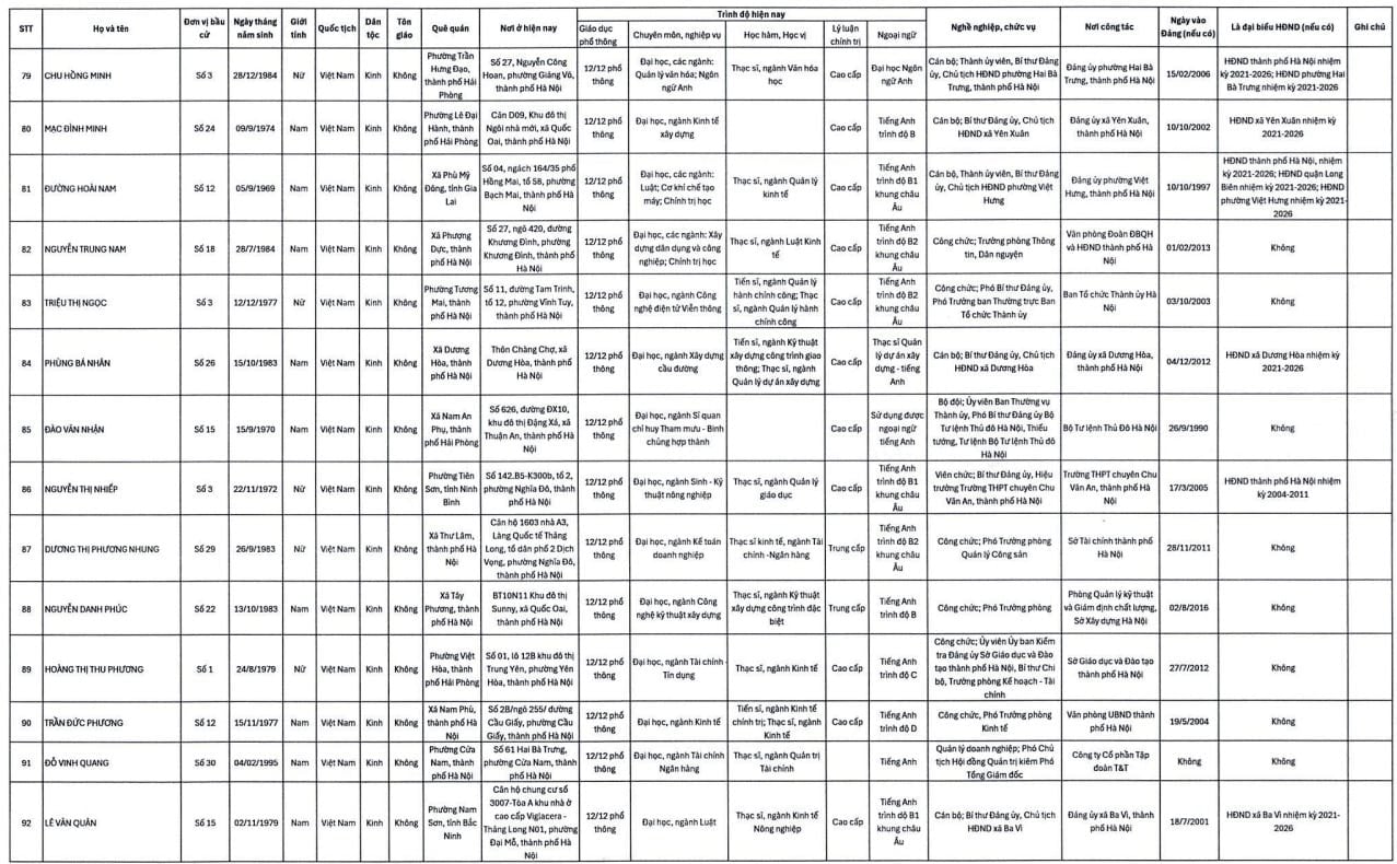 Danh sách trúng cử đại biểu HĐND TP. Hà Nội nhiệm kỳ 2026-2031 gồm 125 người như sau:
