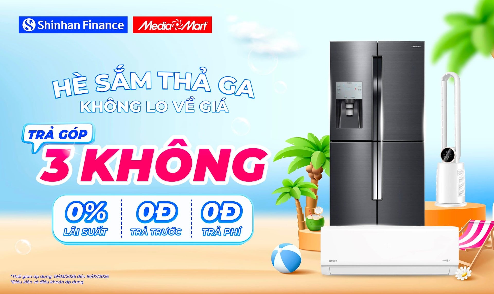 (Banker.vn) Nhằm mang đến giải pháp chi tiêu thông minh cho người tiêu dùng trong dịp hè 2026, Công ty Tài chính TNHH Một thành viên Shinhan Việt Nam (Shinhan Finance) bắt tay cùng hệ thống điện máy Media Mart triển khai chương trình ưu đãi vay trả góp “Hè sắm thả ga, không lo về giá” với combo lợi ích: 0% lãi suất - 0 đồng trả trước – 0 đồng trả phí (phí thẩm định và các phụ phí khác).