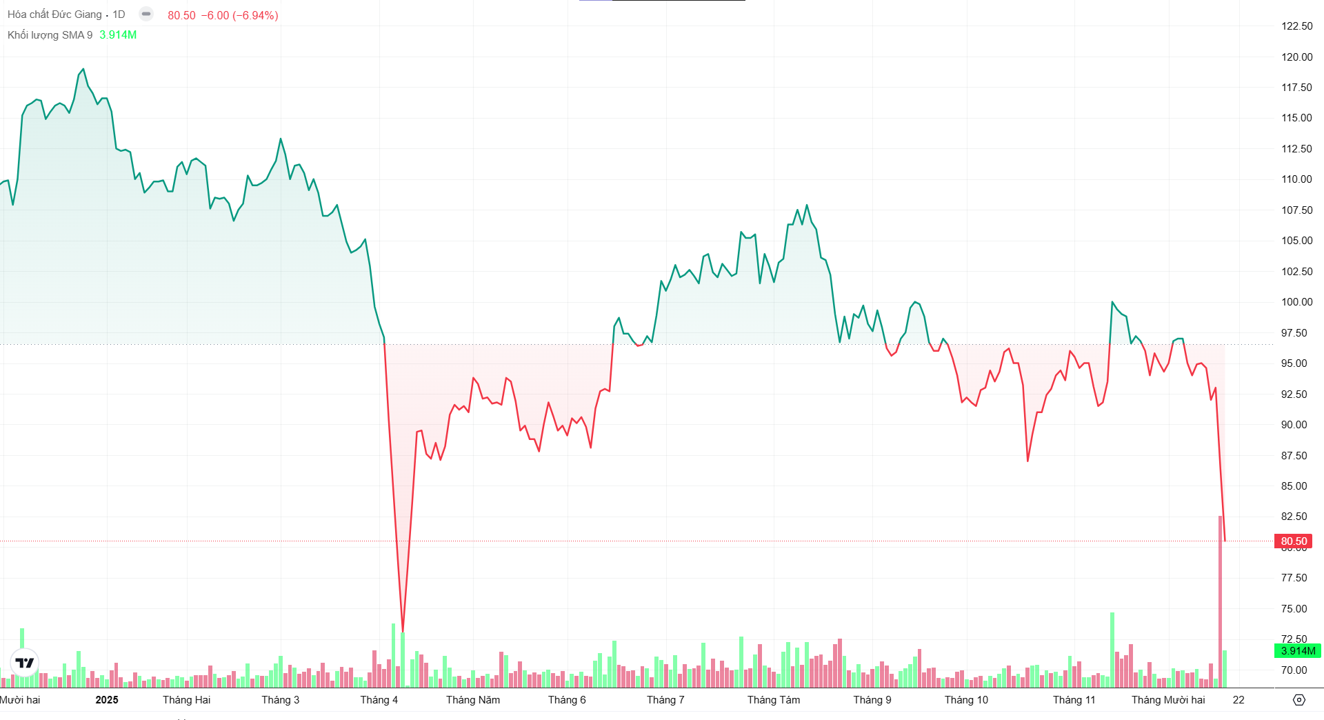 Trên thị trường chứng khoán, trong hai phiên giao dịch ngày 16 và 17/12, cổ phiếu DGC bất ngờ giảm sàn liên tiếp. Phiên 16/12 ghi nhận khối lượng khớp lệnh hơn 18,5 triệu cổ phiếu, tương ứng giá trị giao dịch trên 1.600 tỷ đồng. Đến phiên 16/12, cổ phiếu tiếp tục giảm sàn với lượng dư bán ở mức hàng chục triệu đơn vị.