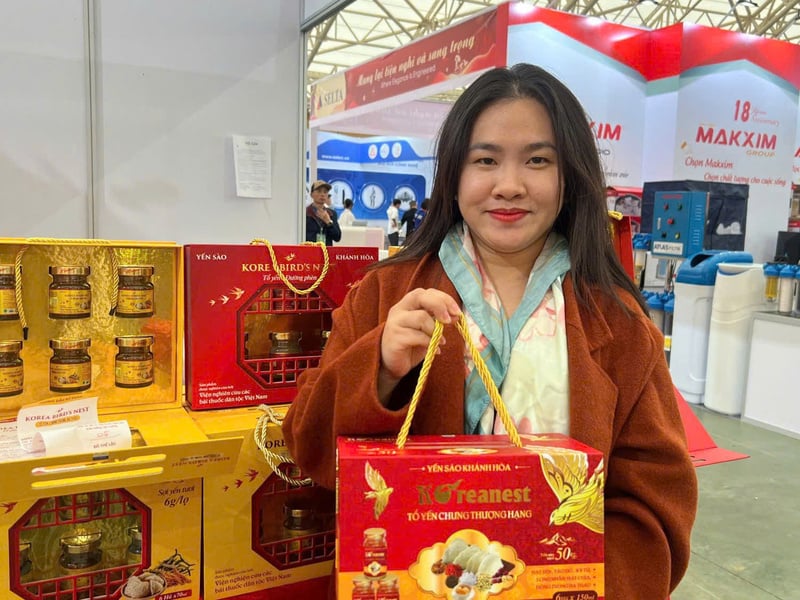 Trong số đó, gian hàng của thương hiệu Koreanest thu hút sự chú ý khi mang tới hội chợ những sản phẩm yến sào chất lượng cao, tốt cho sức khỏe để phục vụ khách hàng. Là người kinh doanh thực phẩm dinh dưỡng, chị Hà Dung - Giám đốc công ty TNHH Dinh Dưỡng Nature cho biết, doanh nghiệp mong muốn được tiếp cận tệp khách hàng trong nước và trong tương lai sẽ xuất khẩu sản phẩm yến sào mang thương hiệu Việt sang thị trường Trung Quốc cũng như các đối tác mới thông qua Hội chợ Mùa Xuân.