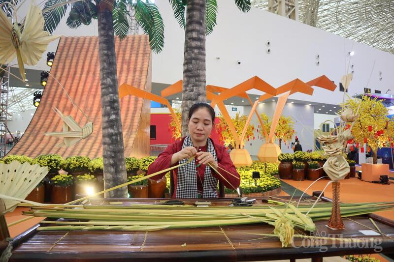 Dưới đôi bàn tay khéo léo của người nghệ nhân, những chiếc lá dừa tưởng chừng đơn sơ được “lột xác” thành các sản phẩm nghệ thuật tinh xảo và những món đồ chơi dân dã, gần gũi. Gian hàng vì thế trở thành điểm dừng chân hấp dẫn của du khách, đặc biệt là các em nhỏ.