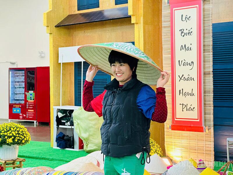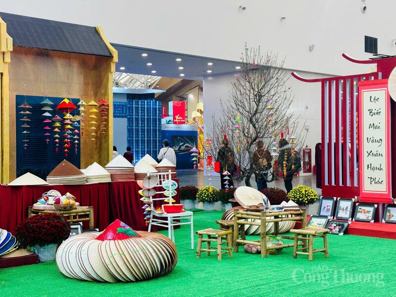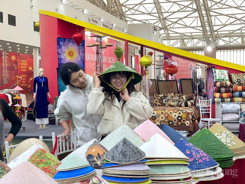 Bên cạnh đó, gian hàng nón làng Chuông cũng được du khách đến với Hội chợ Mùa Xuân 2026 đặc biệt ưa thích. Tại đây, các nghệ nhân tại làng Chuông đã giới thiệu các sản phẩm nón đặc trưng với nhiều hoạ tiết đặc sắc thu hút du khách