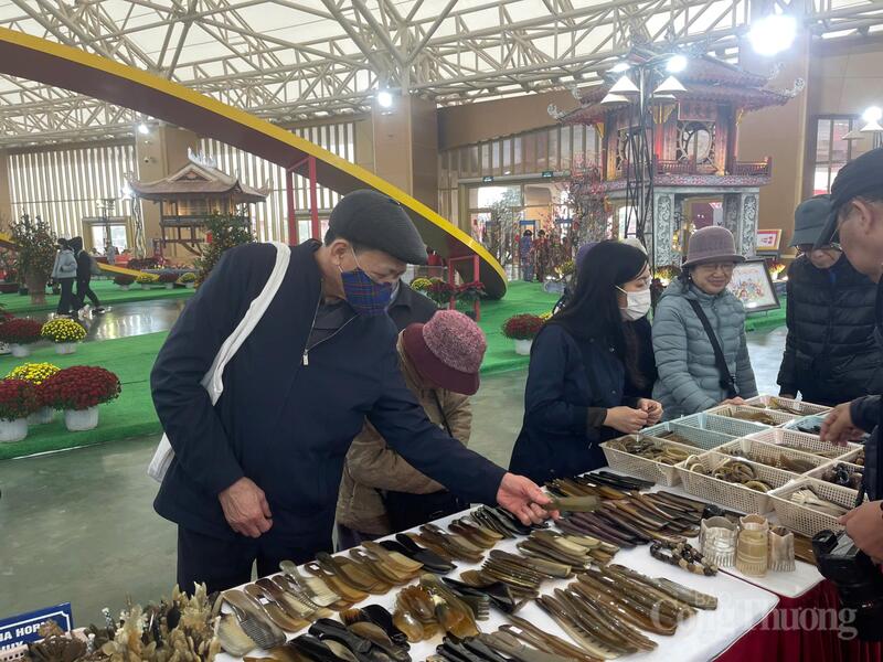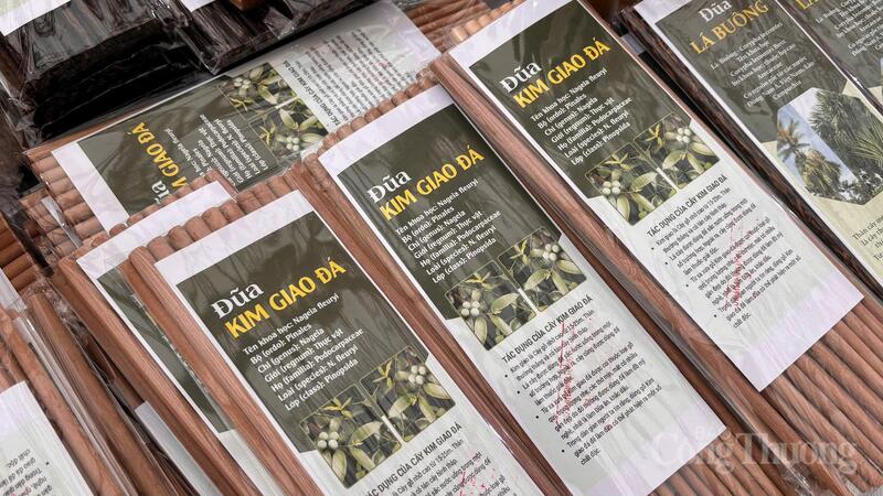 Theo chia sẻ của đại diện gian hàng thủ công mỹ nghệ, sản phẩm được đặc biệt ưa chuộng là đũa Kim Giao - loại đũa cao cấp được làm từ cây Kim Giao của rừng Cúc Phương, đũa buông (làm từ cây buông) và đũa trúc. Dù sản phẩm có giá không rẻ nhưng chỉ trong buổi chiều hôm qua (3/2), doanh nghiệp đã tiêu thụ được 50 gói đũa Kim Giao (mỗi gói 10 đôi, giá 500.000 đồng/10 đôi).