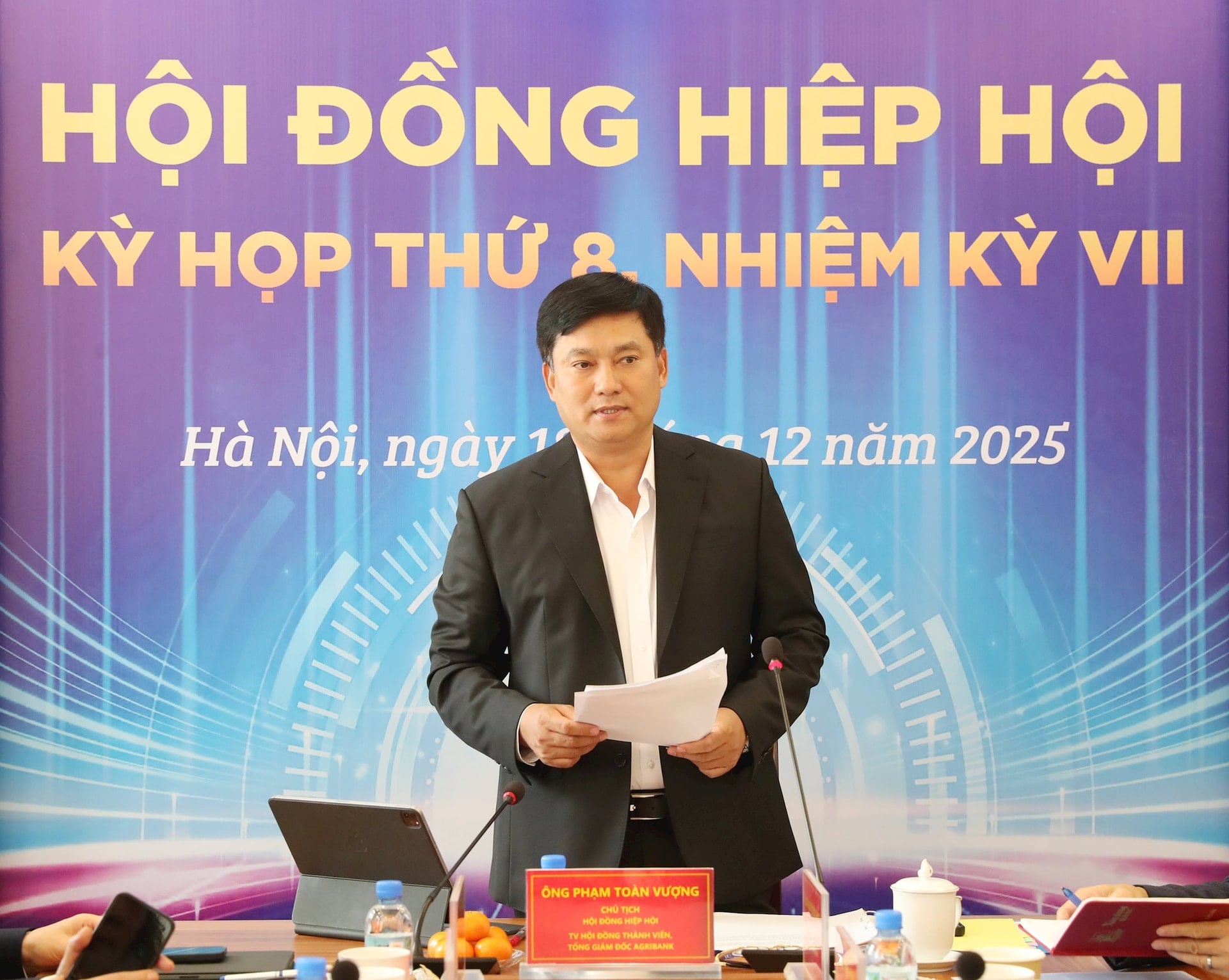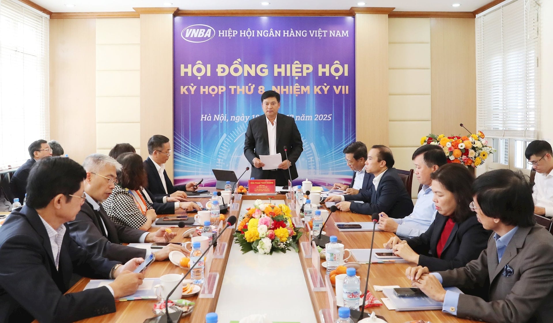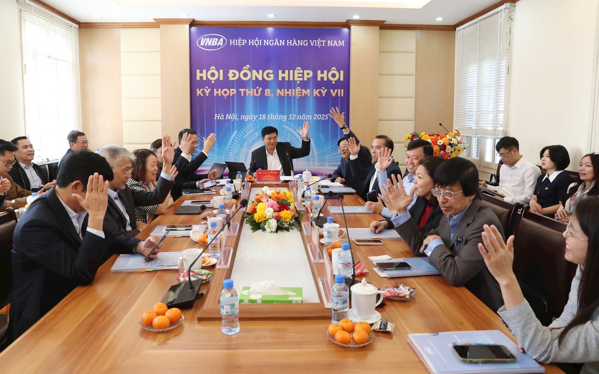 (Banker.vn) Sáng ngày 18/12/2025, Hội đồng Hiệp hội Ngân hàng Việt Nam (VNBA) tổ chức kỳ họp thứ 8, nhiệm kỳ VII. Ông Phạm Toàn Vượng - Chủ tịch Hội đồng Hiệp hội, Thành viên Hội đồng thành viên kiêm Tổng Giám đốc Agribank chủ trì kỳ họp.
