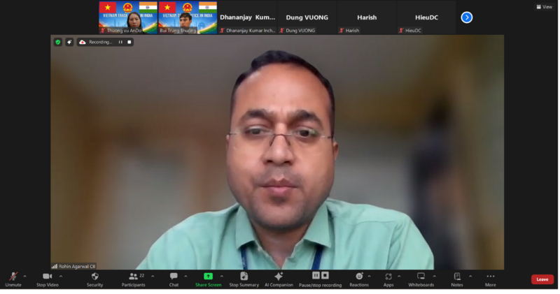 Thay mặt CII, ông Rohin Agarwal, Giám đốc phụ trách ASEAN và Châu Đại Dương, bày tỏ cảm ơn Thương vụ Việt Nam tại Ấn Độ đã chủ động tổ chức phiên làm việc; đồng thời đánh giá đây là hoạt động thiết thực góp phần thúc đẩy hợp tác kinh tế giữa hai nước, đặc biệt trong bối cảnh cộng đồng doanh nghiệp hai bên đang quan tâm mở rộng hợp tác trong các lĩnh vực mới.