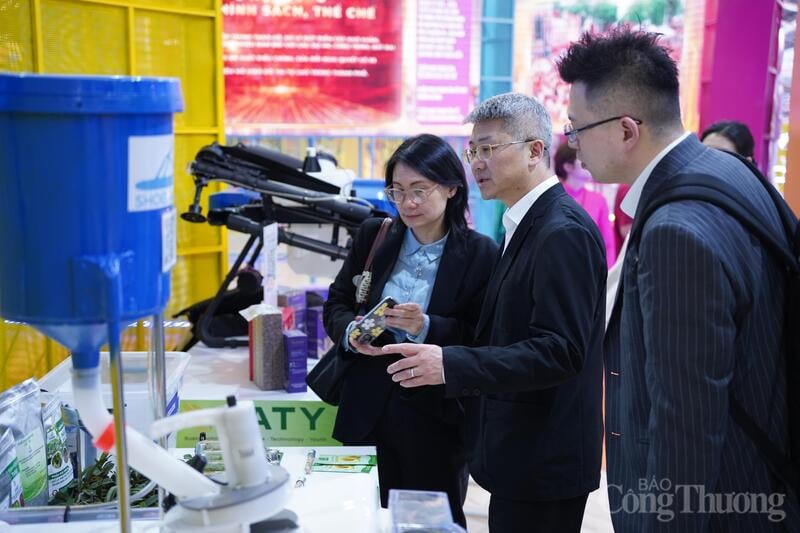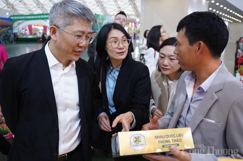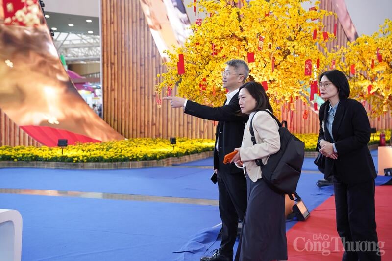 Đoàn công tác của Cục Triển lãm Nhập khẩu quốc tế Trung Quốc thăm quan Hội chợ Mùa Xuân. Ảnh: Mai Linh
