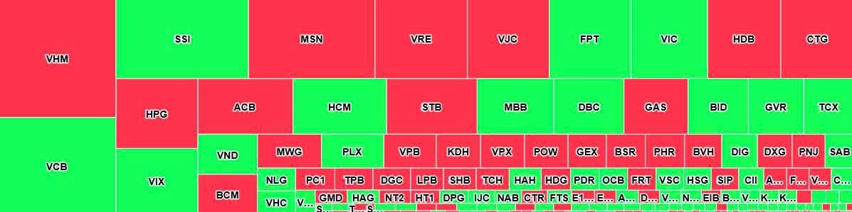 Kết phiên, chỉ số giảm 8,5 điểm, dừng tại 1.894 điểm. Thanh khoản duy trì ở mức cao khi giá trị giao dịch trên sàn HoSE vọt lên hơn 46.000 tỷ đồng, cho thấy hoạt động giao dịch diễn ra sôi động trong bối cảnh thị trường rung lắc.