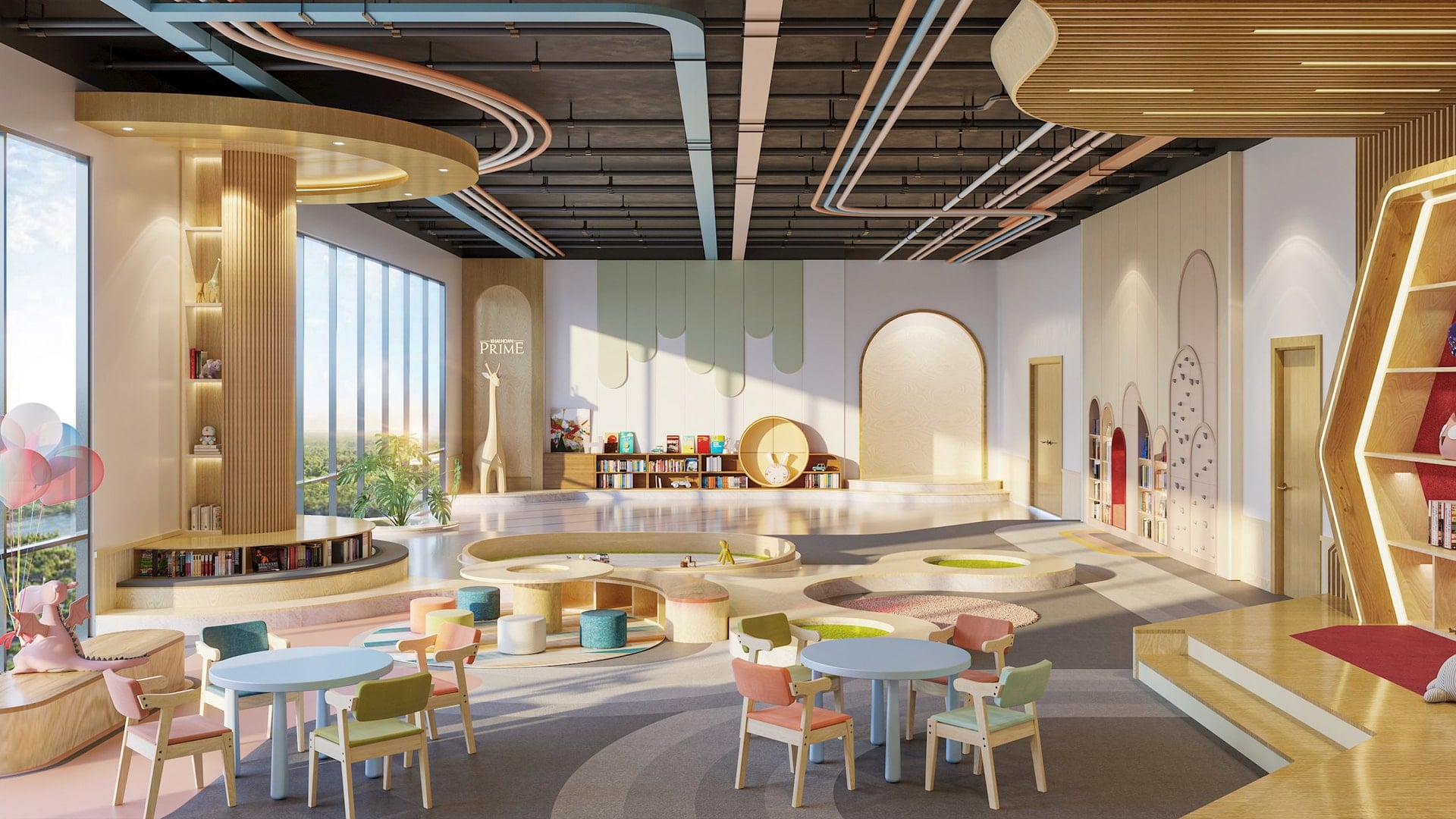 Trong khi đó, trẻ nhỏ được lớn lên trong môi trường hiện đại, giàu tính giáo dục. Việc tích hợp trường mầm non quốc tế và học viện phát triển tài năng ngay nội khu giúp rút ngắn thời gian di chuyển, đồng thời tạo điều kiện để trẻ tiếp cận môi trường học tập chất lượng từ sớm. Các tiện ích như thư viện, khu thể thao ngoài trời cũng góp phần phát triển toàn diện cả thể chất lẫn trí tuệ.