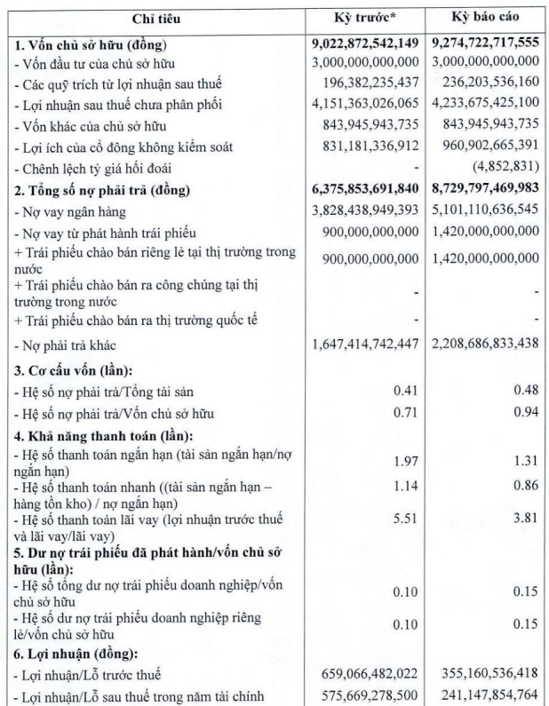 Báo cáo cho thấy, mức tăng này chủ yếu đến từ khoản vay ngân hàng và nợ trái phiếu, trong đó vay ngân hàng tăng 33% lên 5.101 tỷ đồng, còn nợ trái phiếu tăng 58%, đạt 1.420 tỷ đồng.