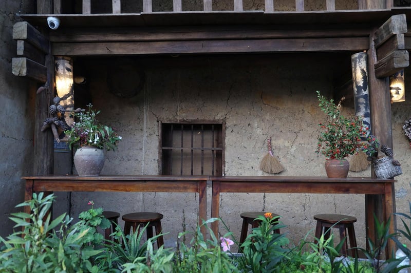 Quán cà phê "Cực Bắc" mở ra khung cảnh nơi thời gian lắng lại bên mái nhà trình tường. Ảnh: Lê Phú.