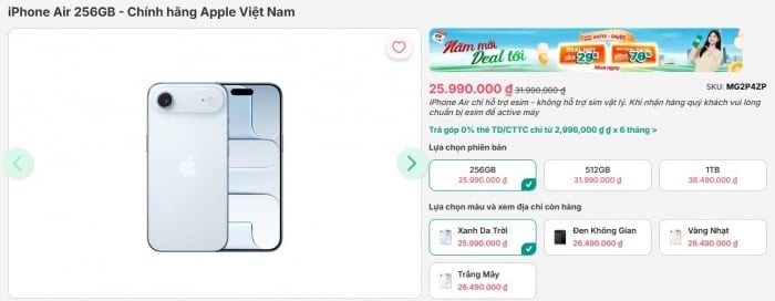 Ở thời điểm hiện tại, iPhone Air đang được bán với mức giá lần lượt khoảng 25,9 – 38,4 triệu đồng tùy dung lượng. So với thời điểm ra mắt, đây là mức giảm rất sâu đối với một chiếc iPhone chỉ mới hơn 3 tháng tuổi. Nếu không quá đặt nặng camera nhiều ống kính, iPhone Air rõ ràng là một trong những chiếc iPhone “đáng tiền” nhất hiện nay, hội tụ thiết kế mỏng nhẹ, hiệu năng đỉnh cao và AI mạnh mẽ, đủ dùng bền bỉ thêm 5–6 năm mà chưa lo lỗi thời.