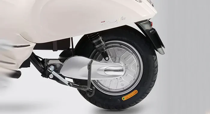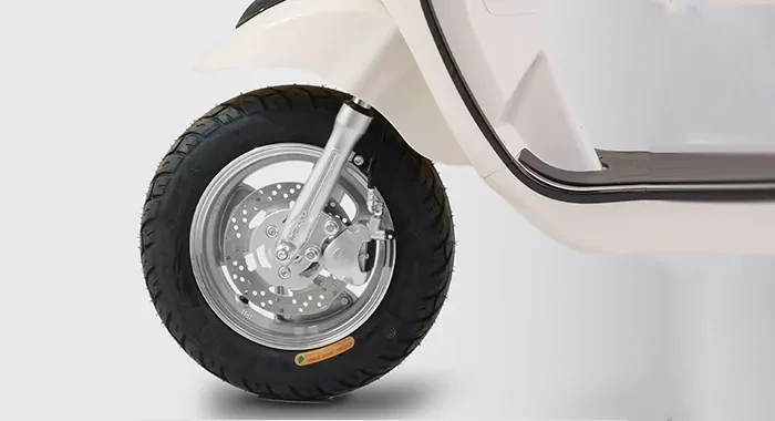 Về khả năng chịu tải, xe điện Espero Diamond Plus có thể chở tối đa khoảng 150 kg, đủ để đáp ứng nhu cầu đi hai người hoặc mang thêm hành lý. Xe sử dụng bánh xe đường kính 16 inch trước và sau, lốp không săm giúp tăng độ bám đường và hạn chế rủi ro khi cán đinh. Bộ vành thép đúc mang lại độ bền cao, phù hợp với điều kiện sử dụng thường xuyên trong đô thị.
