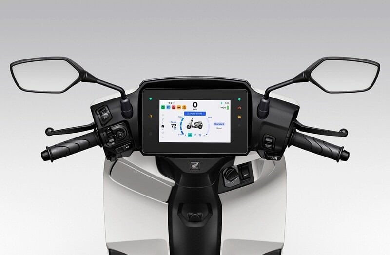 Bên cạnh đó, Honda CUV e: còn sở hữu loạt trang bị hiện đại hàng đầu phân khúc xe máy điện, nổi bật là cụm đồng hồ TFT 7 inch tích hợp Honda RoadSync DUO. Hệ thống này cho phép kết nối smartphone, hiển thị thông báo, cuộc gọi, tin nhắn, điều khiển nhạc, dẫn đường và thậm chí hỗ trợ điều khiển bằng giọng nói là những tính năng vốn chỉ xuất hiện trên các mẫu xe cao cấp.