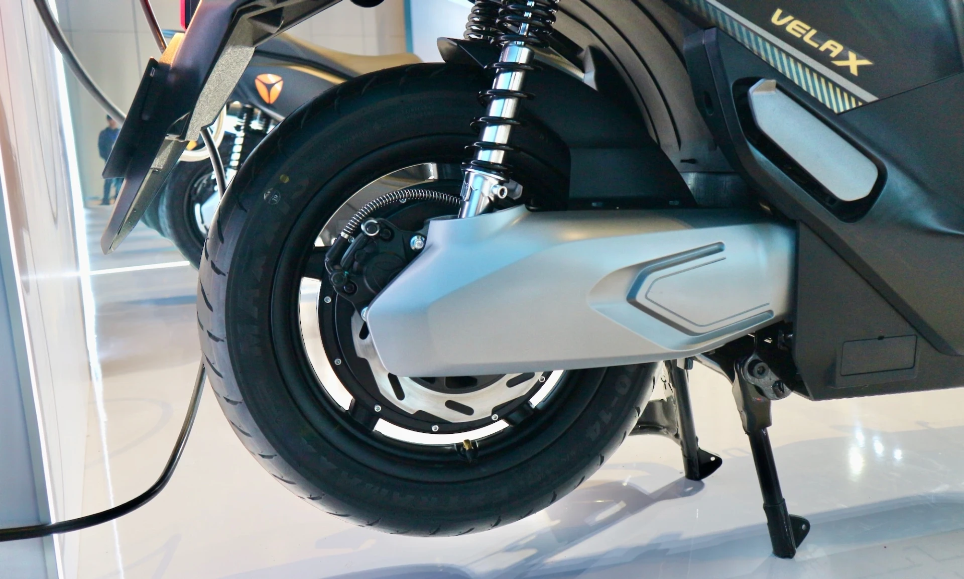 Sàn để chân của Velax được thiết kế rộng, phẳng, mang lại tư thế ngồi thoải mái khi di chuyển trong đô thị. Yên xe phân tầng rõ ràng cho người lái và người ngồi sau, tạo cảm giác chắc chắn và đỡ mỏi khi đi đường dài. Bộ mâm 14 inch thiết kế 10 chấu tăng thêm vẻ thể thao, kết hợp phanh đĩa trước và sau. Tuy không được trang bị ABS, Velax vẫn có hệ thống phanh kết hợp CBS giúp phân bổ lực phanh đều hơn, đảm bảo an toàn trong điều kiện sử dụng thông thường.