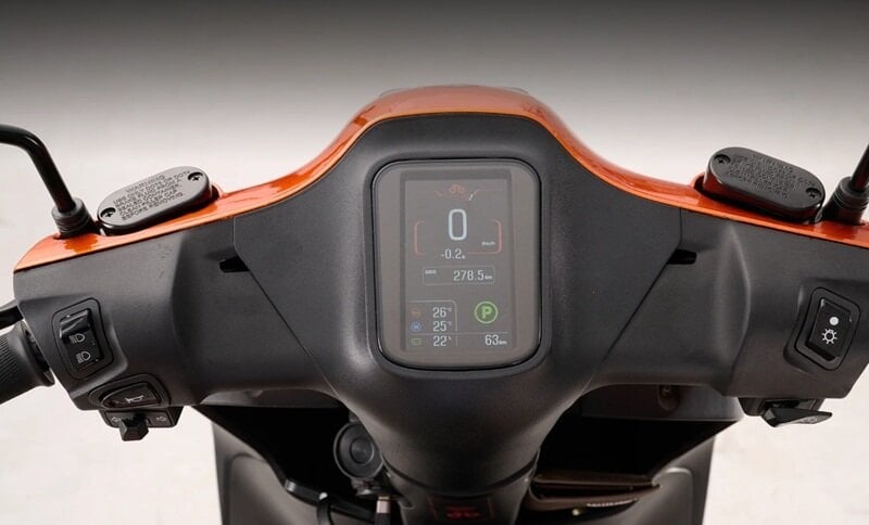 Cụm đồng hồ kỹ thuật số đặt trung tâm hiển thị đầy đủ thông tin vận hành, đồng thời hỗ trợ kết nối Bluetooth với smartphone. Thông qua kết nối này, người dùng có thể theo dõi tình trạng xe và nhận các bản cập nhật phần mềm OTA mà không cần đưa xe tới xưởng.