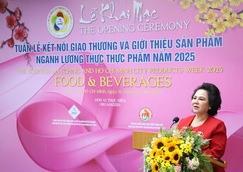 Chia sẻ tại sự kiện, bà Lý Kim Chi, Chủ tịch Hiệp hội Lương thực - Thực phẩm TP. Hồ Chí Minh (FFA) - nhấn mạnh: Tuần lễ năm nay diễn ra trong bối cảnh hết sức đặc biệt, khi TP. Hồ Chí Minh vừa hoàn thành việc sáp nhập với Bình Dương và Bà Rịa - Vũng Tàu theo chỉ đạo của Trung ương. Đây không chỉ là sự kiện hành chính, mà là bước ngoặt quan trọng, mở ra một không gian phát triển mới cùng trục tăng trưởng mới, nơi hội tụ các ngành công nghiệp, dịch vụ, logistics và đổi mới sáng tạo. Trong tổng thể đó, ngành chế biến lương thực - thực phẩm tiếp tục được thành phố xác định là một trong bốn ngành công nghiệp trọng điểm.