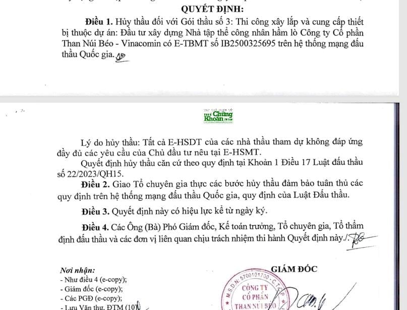 Trước đó, vào tháng 7/2025, Than Núi Béo đã tổ chức mời thầu lần thứ nhất đối với gói thầu số 3. Biên bản mở thầu ngày 11/8/2025 ghi nhận hai liên danh tham dự, trong đó nổi bật là liên danh do Tổng công ty Xây dựng Hà Nội – CTCP đứng đầu và liên danh do chính Công ty CP Tư vấn và Xây dựng Dân dụng – Công nghiệp đại diện. Tuy nhiên, quá trình đánh giá hồ sơ cho thấy tất cả E-HSDT đều không đáp ứng đầy đủ yêu cầu, buộc chủ đầu tư phải hủy thầu vào ngày 19/9/2025.