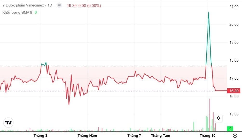 Trên thị trường, VMD từng gây chú ý với mô hình “cây thông” khi thanh khoản đột biến trước thời điểm bị đình chỉ. Ở phiên giao dịch cuối cùng trước khi tạm ngưng, cổ phiếu đứng tại 16.300 đồng/cp, tương ứng vốn hóa xấp xỉ 252 tỷ đồng.