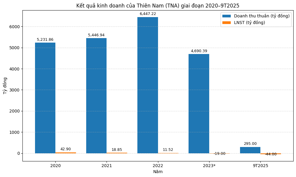 Trước đó, việc chậm trễ trong công bố thông tin là một trong những nguyên nhân khiến cổ phiếu TNA bị hủy niêm yết bắt buộc trên Sở Giao dịch Chứng khoán TP.HCM vào cuối năm 2024. Hiện cổ phiếu này đang giao dịch trên UPCoM.