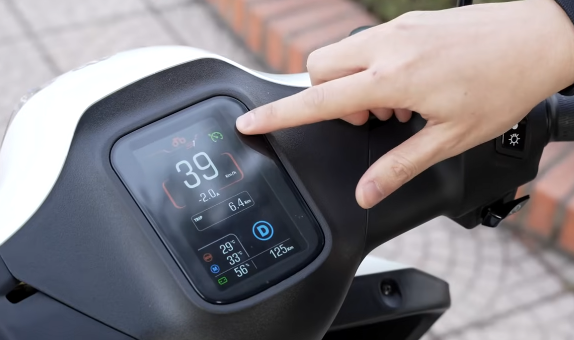Cụm đồng hồ trung tâm là màn hình LCD hiển thị đầy đủ các thông số như tốc độ, quãng đường, mức pin, chế độ lái và cảnh báo. Toàn bộ thao tác chuyển chế độ, khóa xe hay bật Cruise Control đều dễ dùng, phản hồi nhanh.