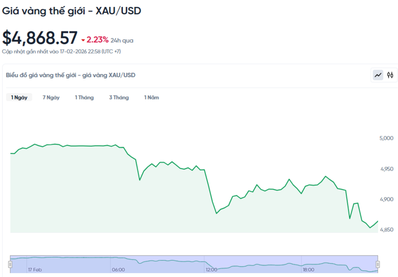Giá vàng thế giới hôm nay 18/02/2026 và biểu đồ biến động giá vàng thế giới 24h qua