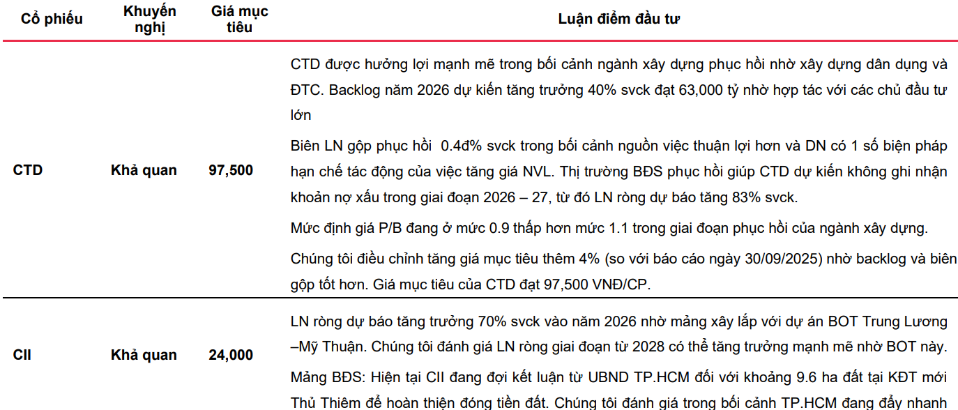 Ở góc nhìn thị trường, định giá của nhóm xây dựng hiện vẫn đang ở mức thấp hơn so với các giai đoạn tăng trưởng trước, với hệ số cổ phiếu trên giá trị sổ sách - đo lường giá so với tài sản ròng.">P/B phổ biến quanh 0,8–1,0 lần. Đây được xem là yếu tố hỗ trợ cho dòng tiền đầu tư quay trở lại khi triển vọng lợi nhuận dần cải thiện.