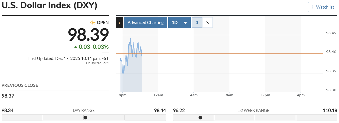 Chỉ số DXY giữ được mức tăng của phiên trước khi nhà đầu tư chuẩn bị đón báo cáo CPI tháng 11 được theo dõi sát sao, dự kiến cho thấy áp lực giá cả vẫn cao hơn mục tiêu của Ngân hàng Dự trữ Liên bang Mỹ (FED).