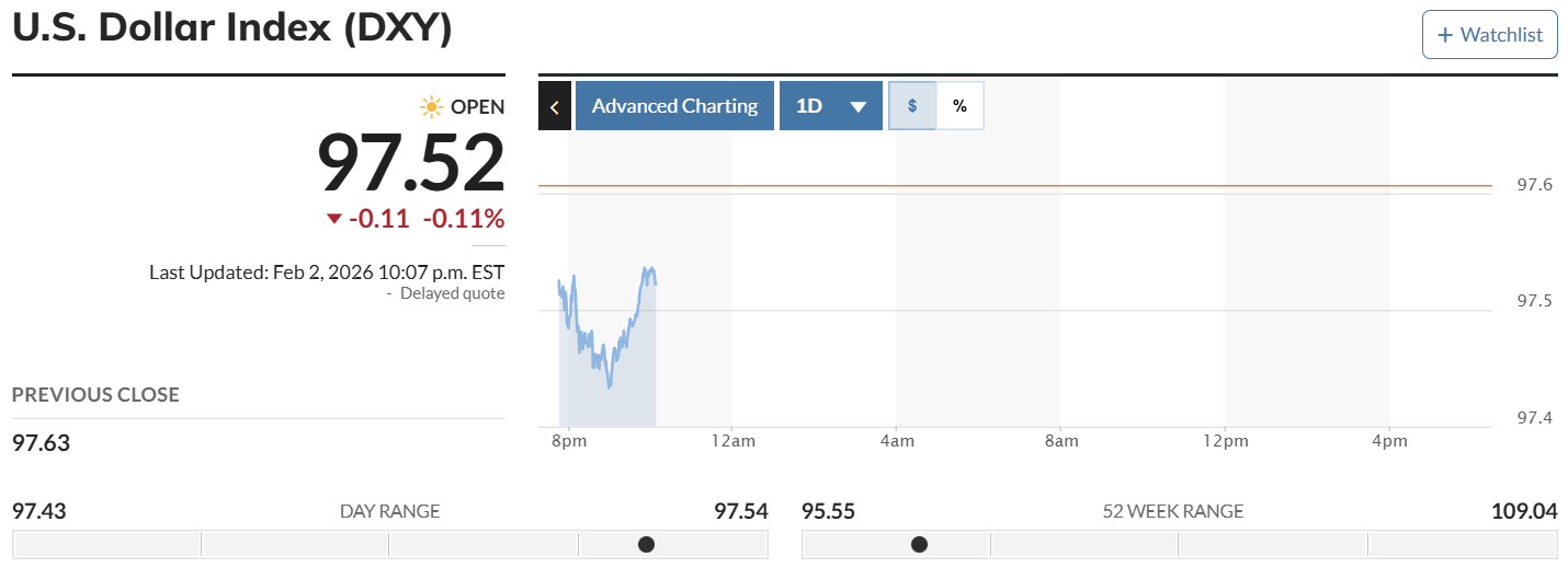 Cùng thời điểm, trên thị trường thế giới, chỉ số USD Index (DXY) - thước đo sức mạnh của đồng bạc xanh so với 6 đồng tiền chủ chốt - hiện ở mức 97,52 điểm, giảm 0,11 điểm so với phiên giao dịch trước.